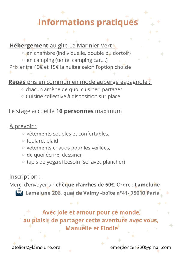 Renseignements et inscriptions : 06 59 25 25 76 (peu de réseau : envoyez-moi un texto et je vous rappelle)